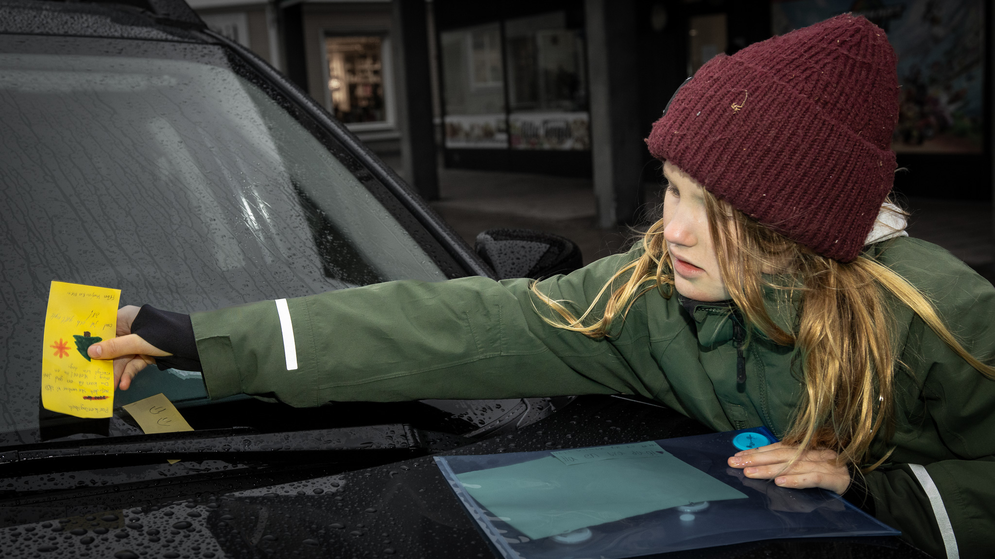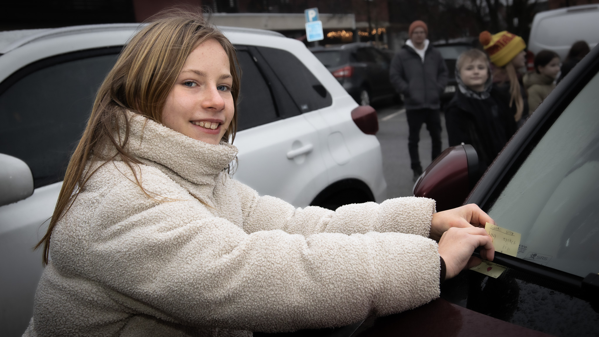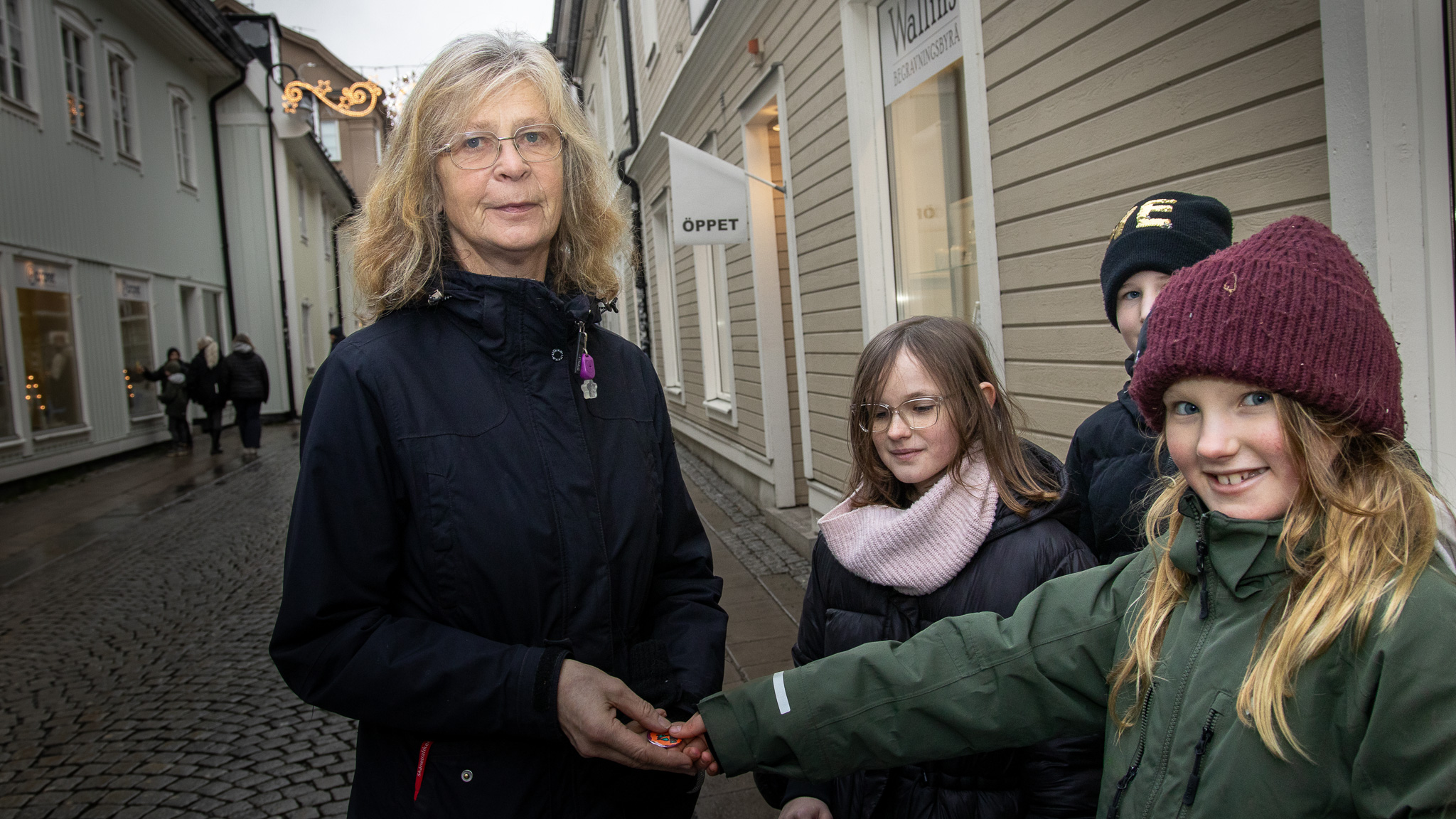 Grethel Jansson var en av dem som tog emot ett budskap från eleverna. – Det var gulligt och väldigt positivt. Det fanns inget bakomliggande alls, bara barn som inte tog ställning i något utan som helt enkelt bidrog med kärlek, säger hon. FOTO: Nicklas Salmin