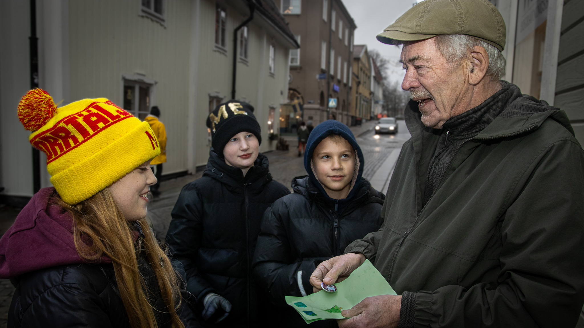Promenaden resulterade i många korta samtal och möten mellan elever och Norrtäljebor – små, men betydelsefulla ögonblick av värme mitt i vardagen.