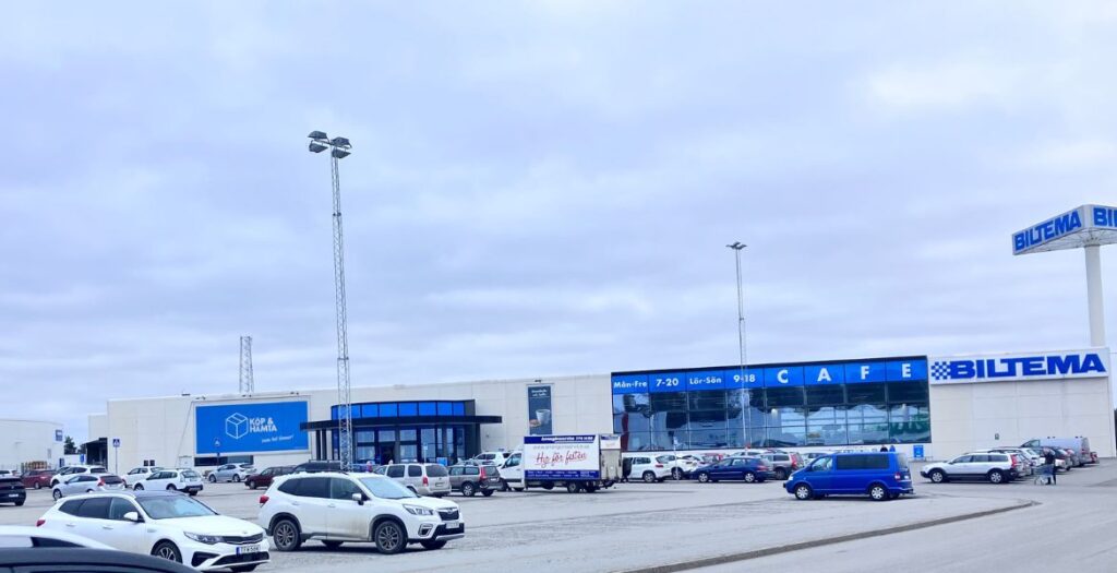 Biltema i Norrtälje i dagsljus.