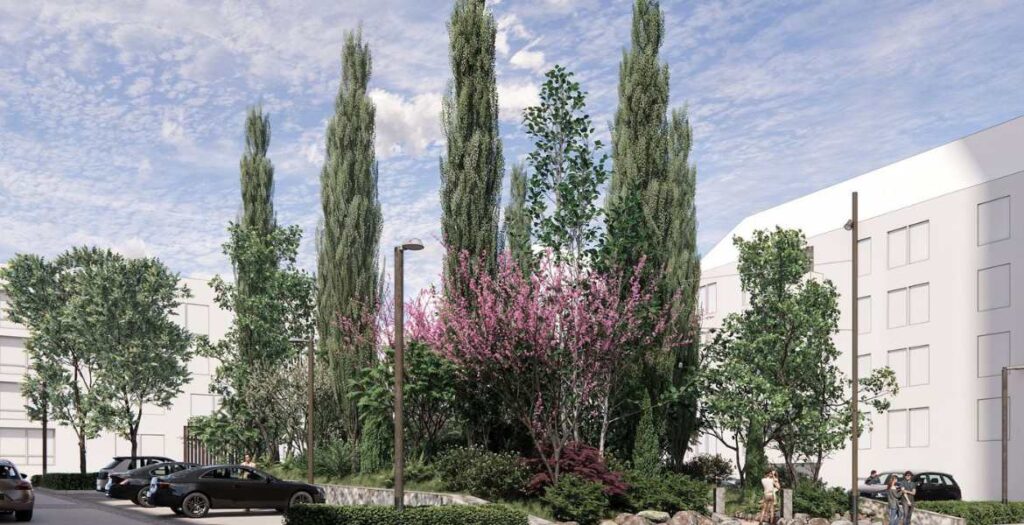 Parken sträcker sig över 400 kvadratmeter och har gestaltats med omsorg om det offentliga rummet.