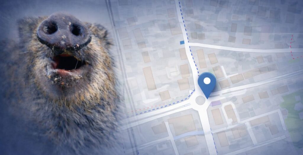 · Kartbild för utbyggnadsprojekt där tänkt dragning för bredband samt fastigheter att ansluta finns markerade.